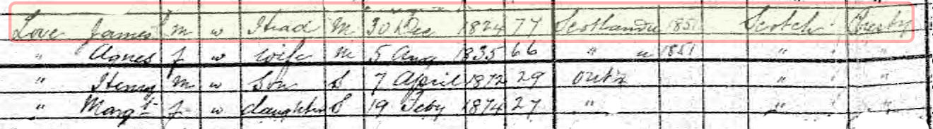 The census record does not support the conclusion that James and Agnes Love were Muslims. Instead, it documents a consistently Presbyterian household, with a single anomalous entry in 1871 that is not corroborated elsewhere.