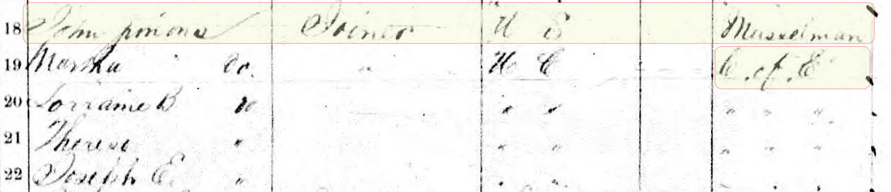 The frequently cited figure of thirteen Muslims in the 1871 census appears to have a partial basis in the record. Twelve individuals can be provisionally identified: ten members of the Love household (Fig. 4) and John and Martha Simons (Fig. 6).